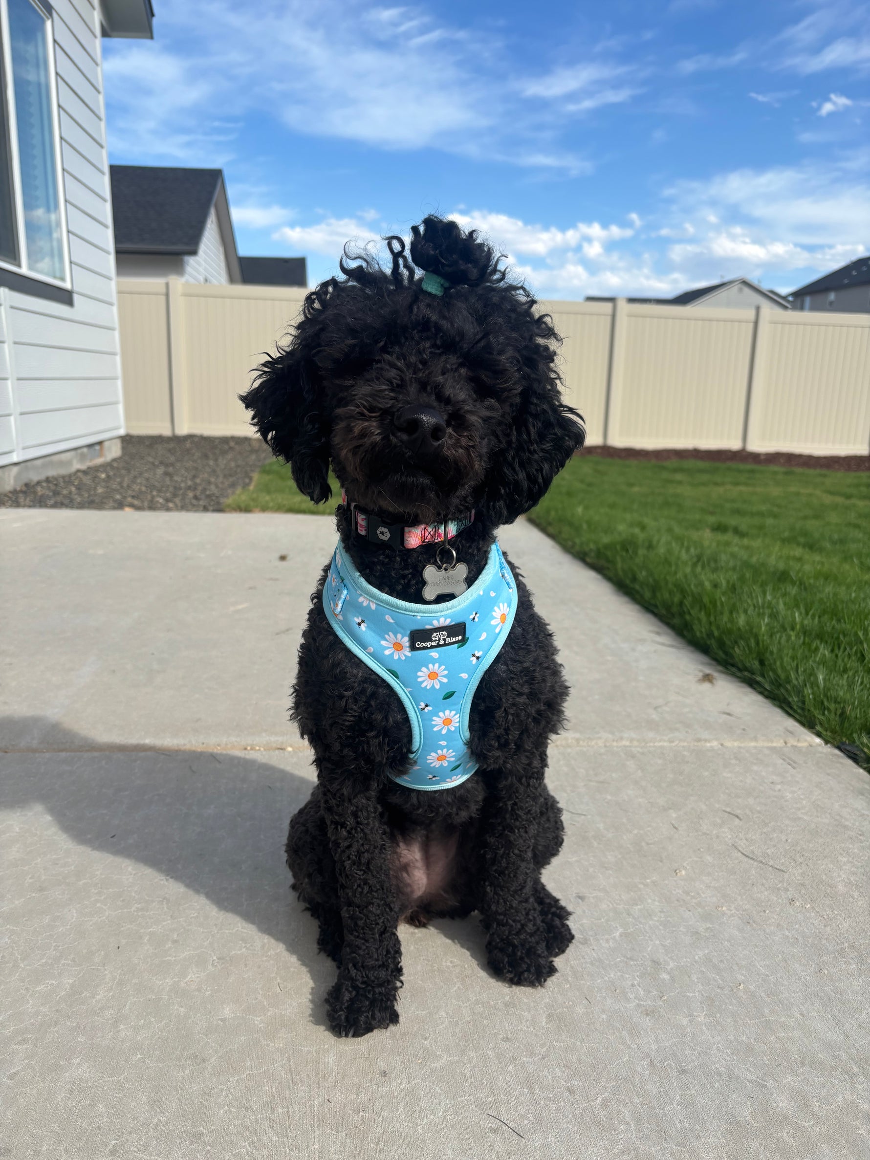 "We love Cinder's new harness! Fits perfectly and is easy to put on and take off."